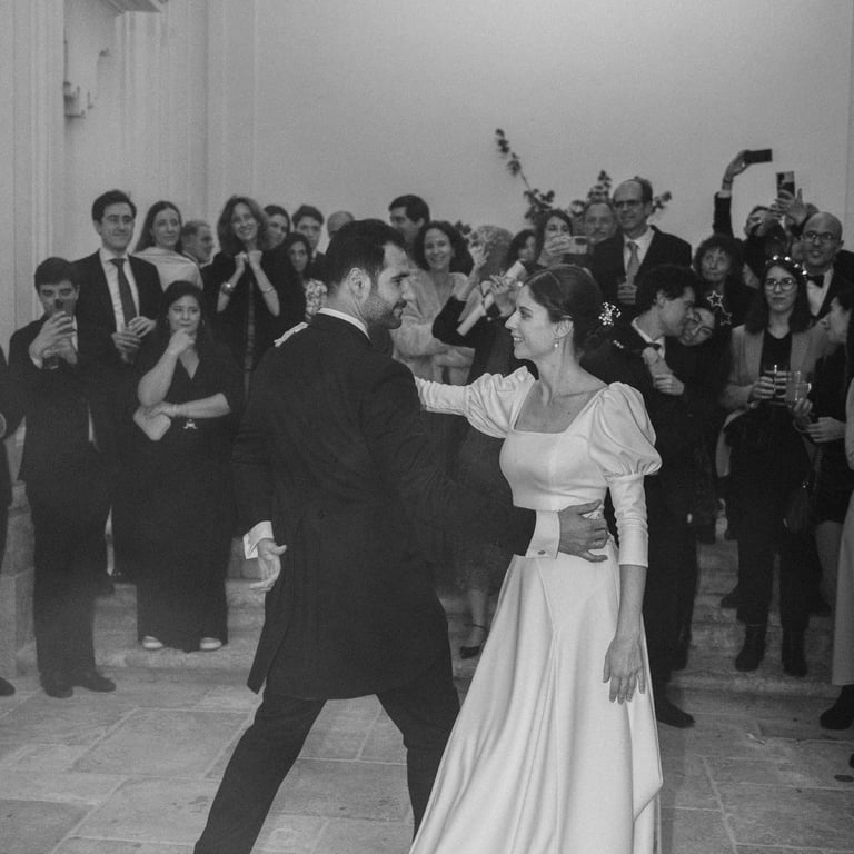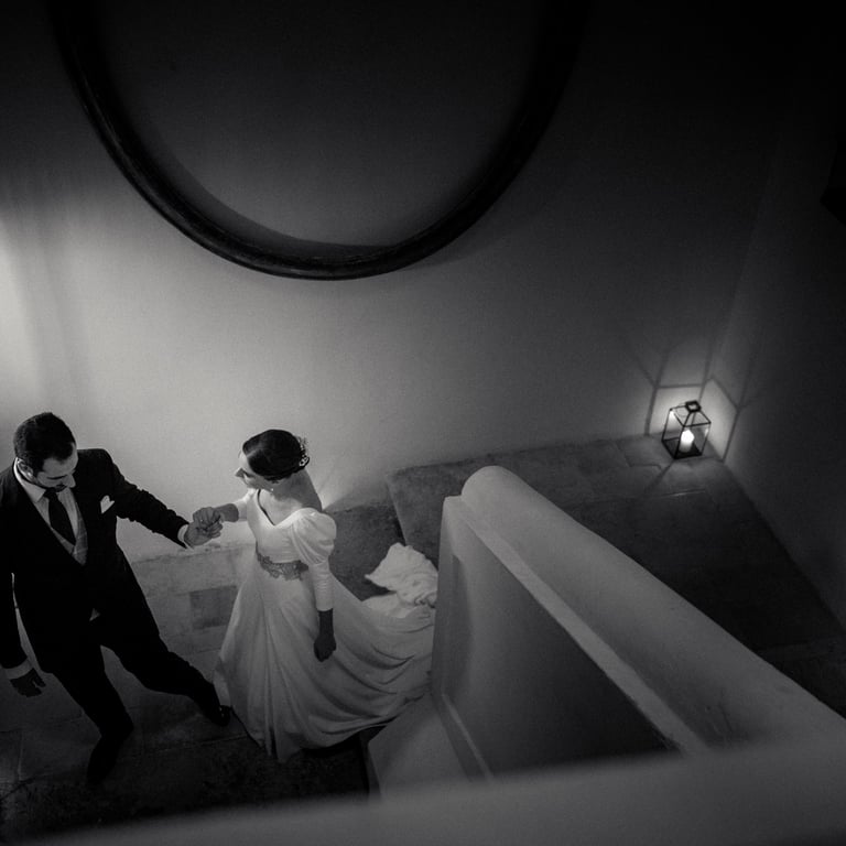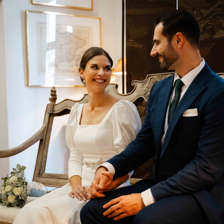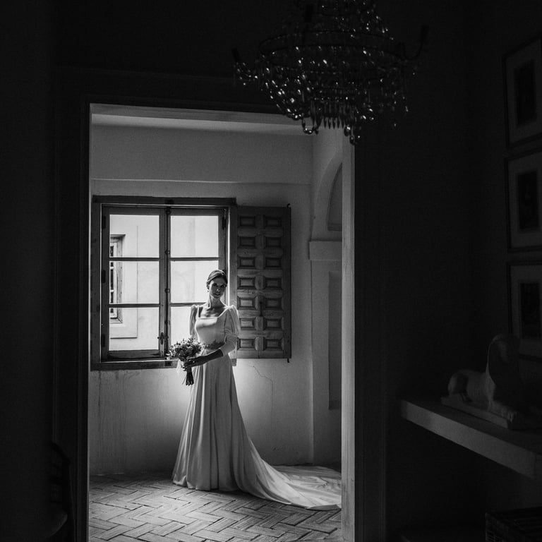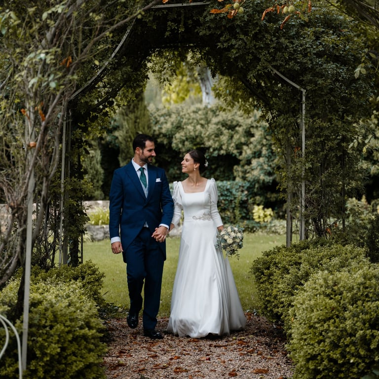 Desde la solemnidad del paisaje castellano hasta el calor íntimo del patio del palacio, cada momento se sintió intencionado. Sin posados, sin artificios. Solo dos personas abrazando la quietud dorada de una tarde de octubre. Esto no fue solo una boda; fue un testimonio de la belleza de las cosas que están construidas para durar.